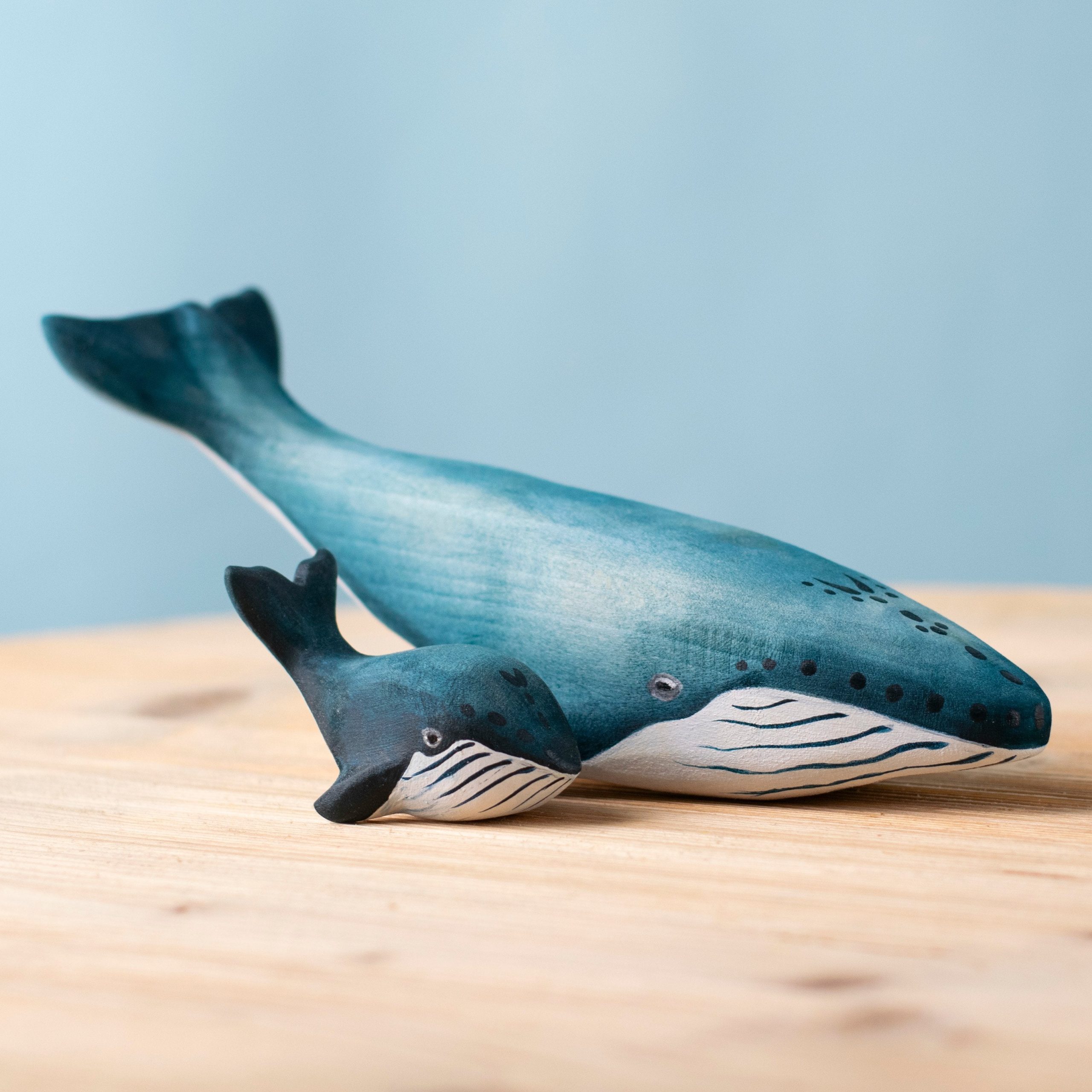 The Blue Whale Set is a heartwarming duo designed to celebrate the gentle majesty of the sea. Handmade from sustainable wood and painted with non-toxic, child-safe colors, this set includes a large Blue Whale and a smaller Baby Blue Whale — perfect for roleplay, bonding themes, and underwater storytelling.