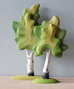 Handmade from linden wood and painted with non-toxic paint, these large trees are connected with wooden pegs and can be disassembled and reassembled easily.