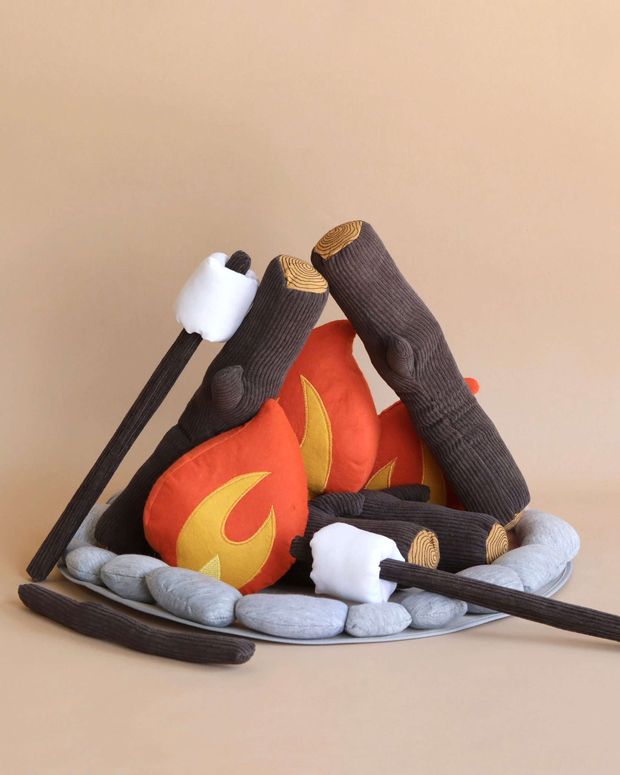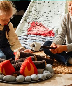 They say, “don’t play with fire”, but this plush campfire is not only safe, it’s fun too. Create flames to toast your marshmallows and make delicious pretend s’mores. Includes a ring of rocks, 4 logs, 2 sticks, 3 flames, 2 roasting sticks, 2 marshmallows and chocolate and crackers for 2 s’mores. S’more fun is cooking!