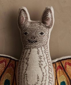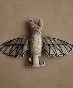 Display the bat wings open or closed. A magnet is sewn inside the wings to keep the fabric together when the wings are shut. Embroidered front and back.