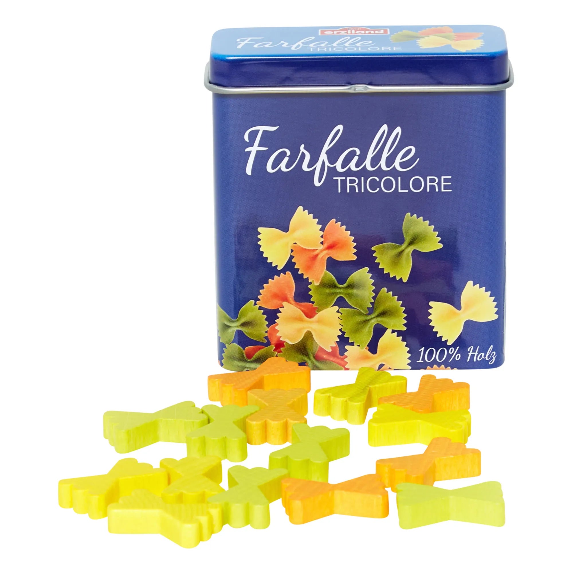 A realistic Farfalle in a Tin that looks good enough to eat! Children love to imitate what adults do, whether it is shopping, cooking, or sitting down to eat. The miniature food by Erzi will become an integral part of playtime, encouraging hours of house and shop fun. Great toys to stimulate young imaginations! Handcrafted in Germany of beechwood.