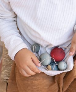 5 pieces with spherical shape, painted by hand. Includes thread for hanging. From 25mm to 40mm in diameter