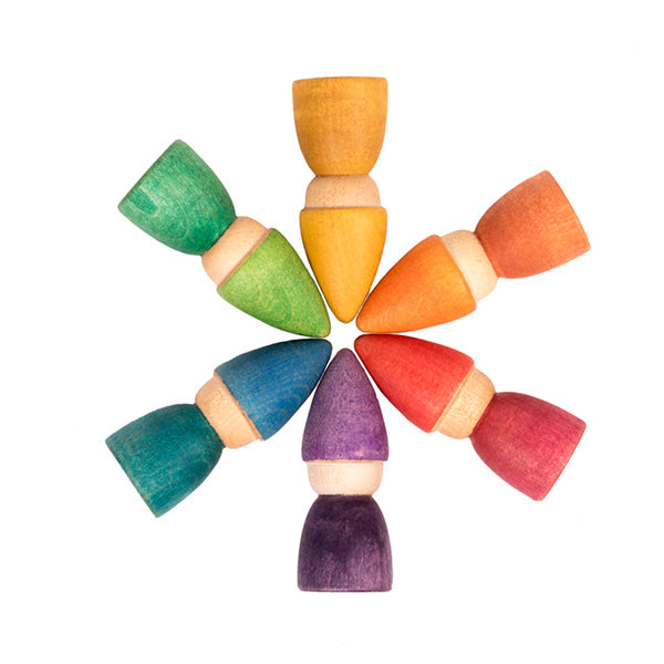 A delightful set of 6 Nins Tomtens in rainbow colors. These little figures may be used on their own for play, or with the other Grapat sets for sorting fun.