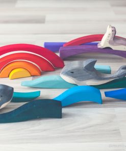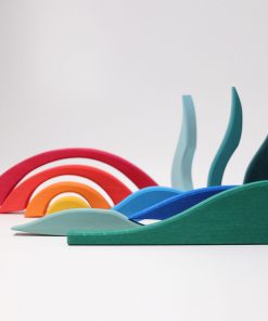 The organic, curved shapes inspire children to develop fine motor skills and spatial thinking skills through block play.