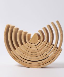 The Natural Tunnel is really versatile: small children stack, sort and build and as the children get older they will use it as a cradle for dolls, as fence for animals, like a tunnel or bridge for vehicles, dollhouse dolls, and to build amazing sculptures.