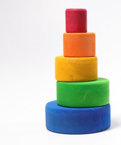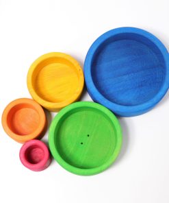 Five wooden bowls, each stained in a beautiful rainbow color. One of our favorite toys due to its versatility and ability to grow with a child. Baby will start with simple stacking play and move onto sorting play. Children love to guess under which bowl an object is hidden. As children grow, the bowls can become important in pretend kitchen or social play and finally when the child is older they can store things in them on their desk!