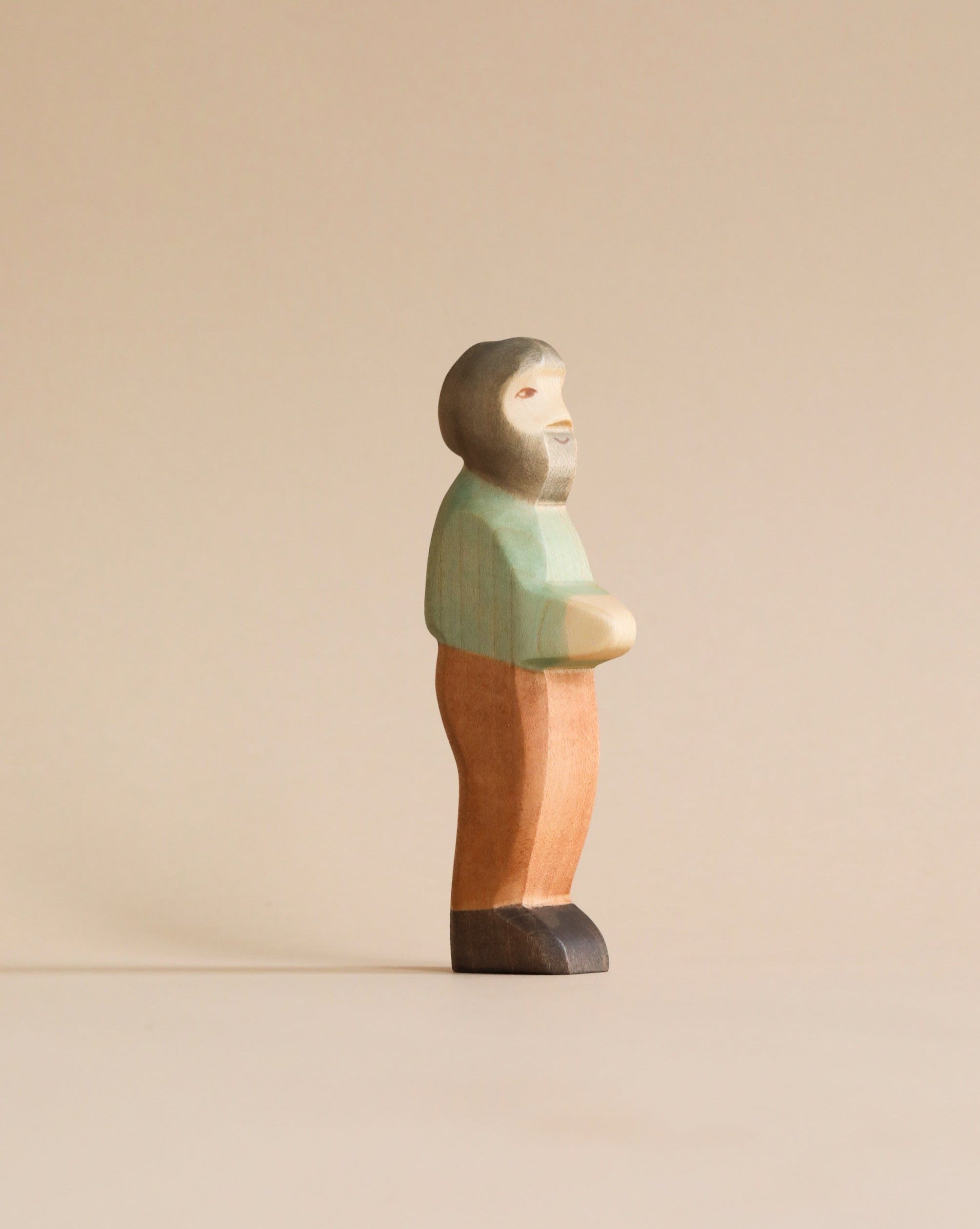 The beautiful figures are made by a small business in the country Georgia, which has been producing high-quality and educationally valuable wooden toys since 1997. With much love and dedication, toys that capture the soul of animals and people have been produced there for over 35 years. Only local woods of the highest quality are used. The edges are rounded and finely sanded in several steps so that they are pleasant and soft to the touch. Finally, they are painted with natural dyes (Biofa) and finally polished with high-quality oil. The workshop is located in a small community with fair pay and a good and friendly working atmosphere. This is how sustainable toys are created that are loved and passed on from generation to generation. Each toy is simple enough to inspire imaginative play, but accurate enough to be realistic. In this way, children’s sense of beauty and imagination is encouraged.