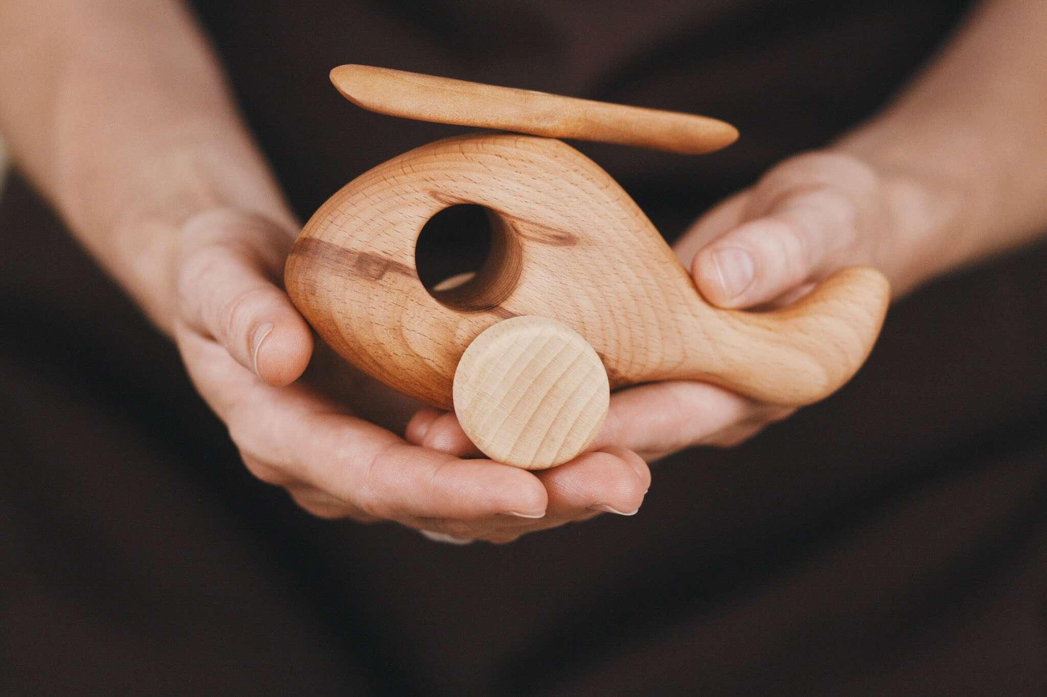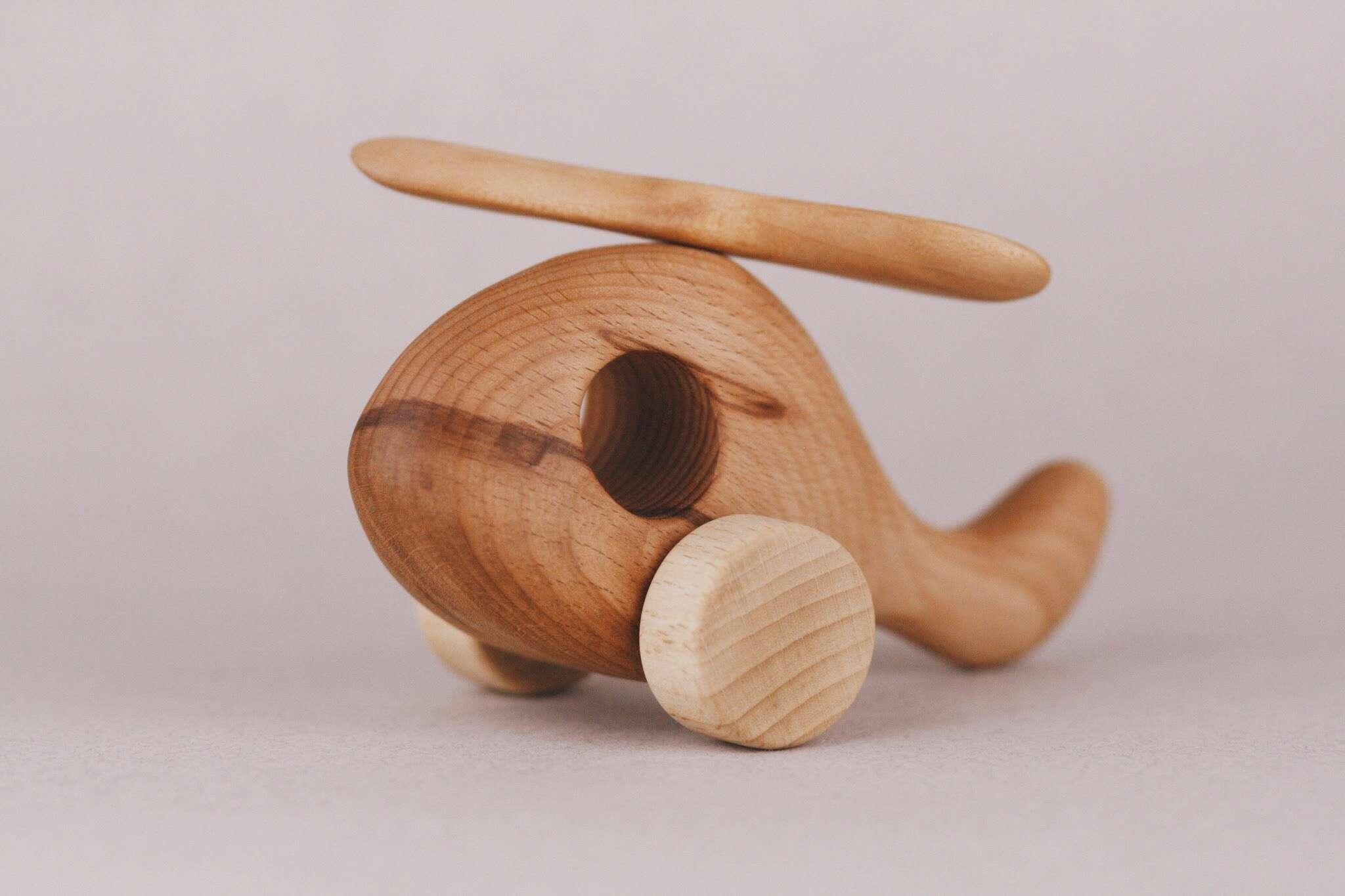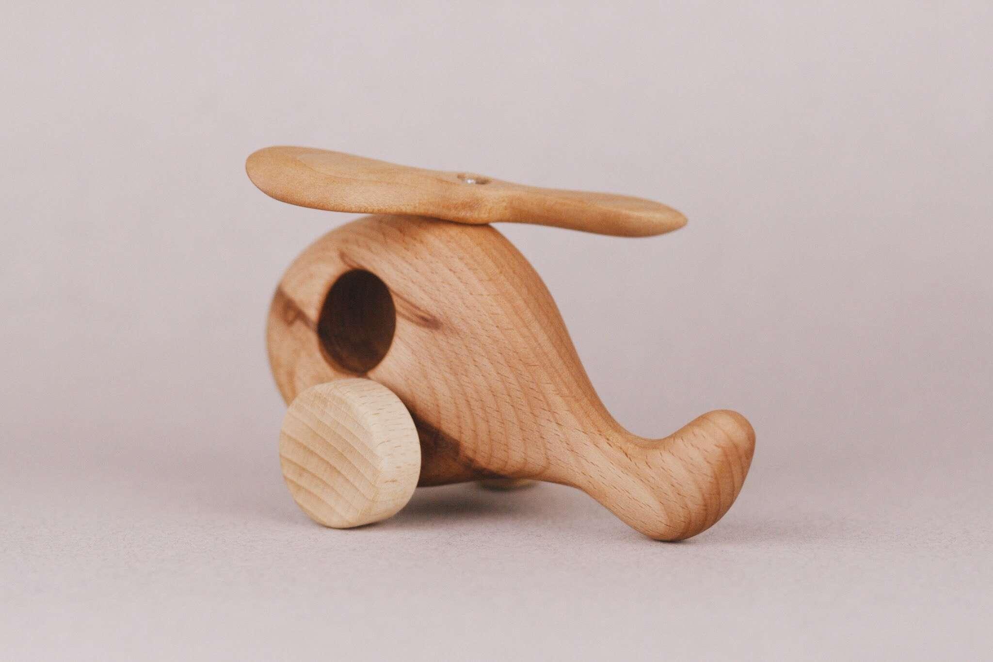 Wooden helicopter, handmade with beech and maple wood. Each piece is coated with natural linseed oil for durability.