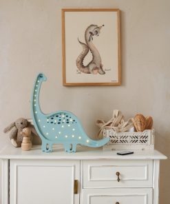 Handmade from 100% natural pinewood, making it as strong and durable as it is beautiful. The Little Lights Dinosaur Lamp is a gentle giant who adds an aura of ancient wonder to your nursery decor. Give your little paleontologist the gift of a prehistoric pal by ordering one today!