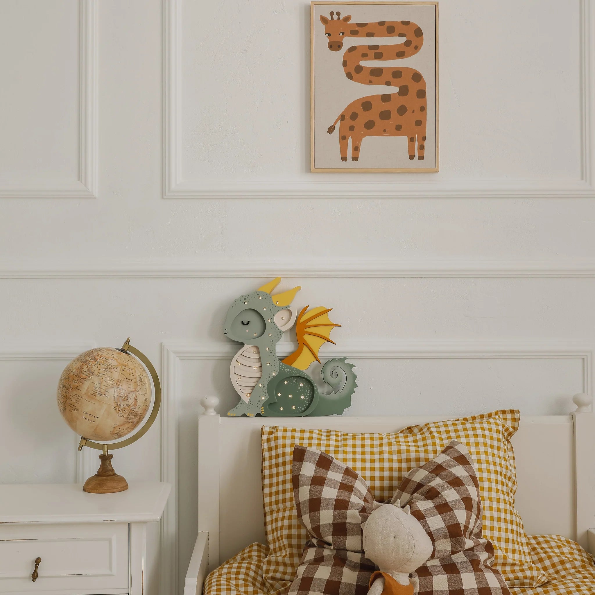 Fits perfectly in any nursery or kids’ room decor, whether sitting bedside, on a dresser, or hung on the wall!