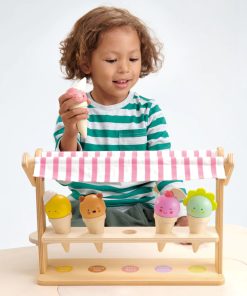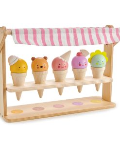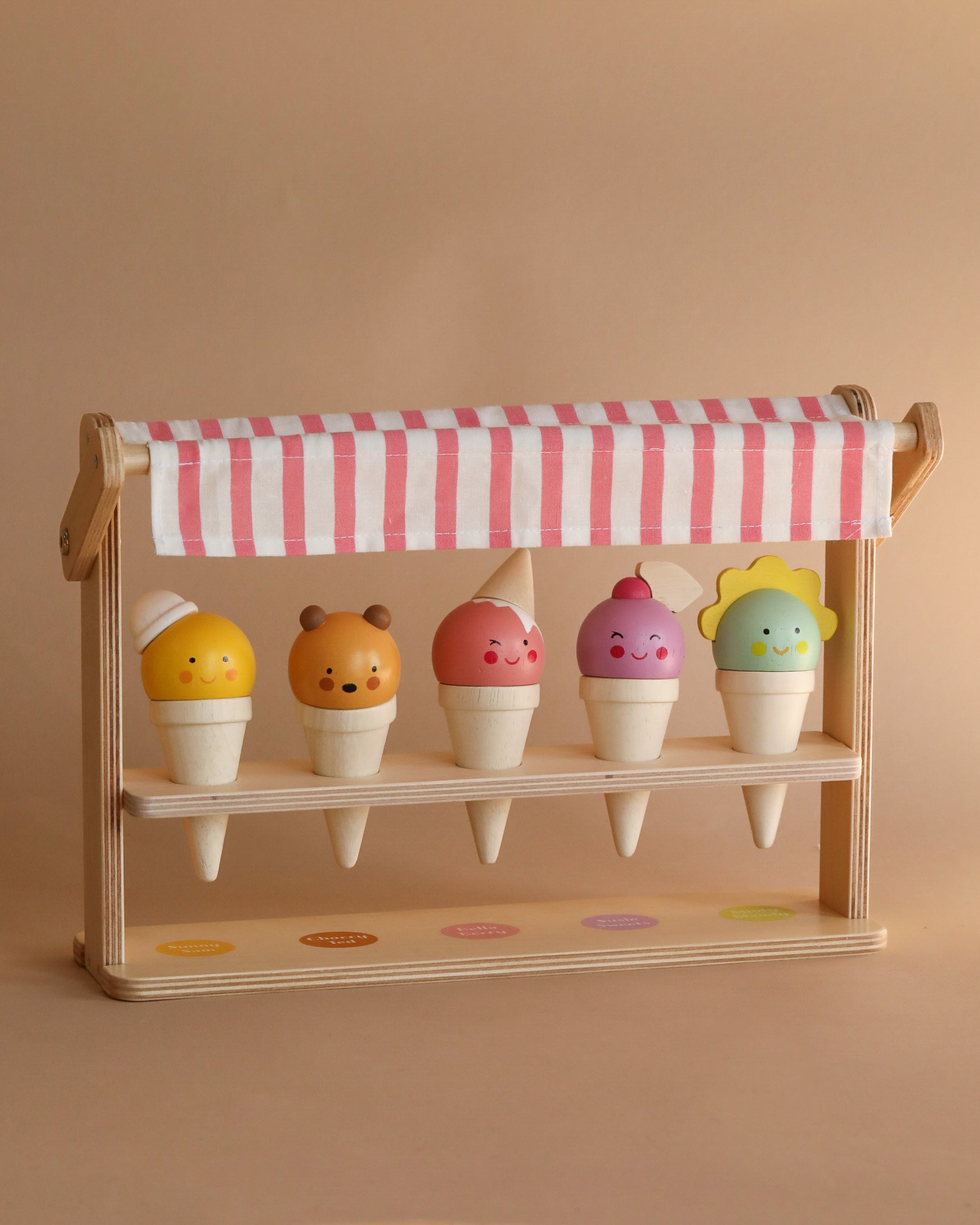 Five delicious and very friendly solid wood ice cream cornets adorn this pretty little shop. Choose your flavor and have fun matching the characters to their names.