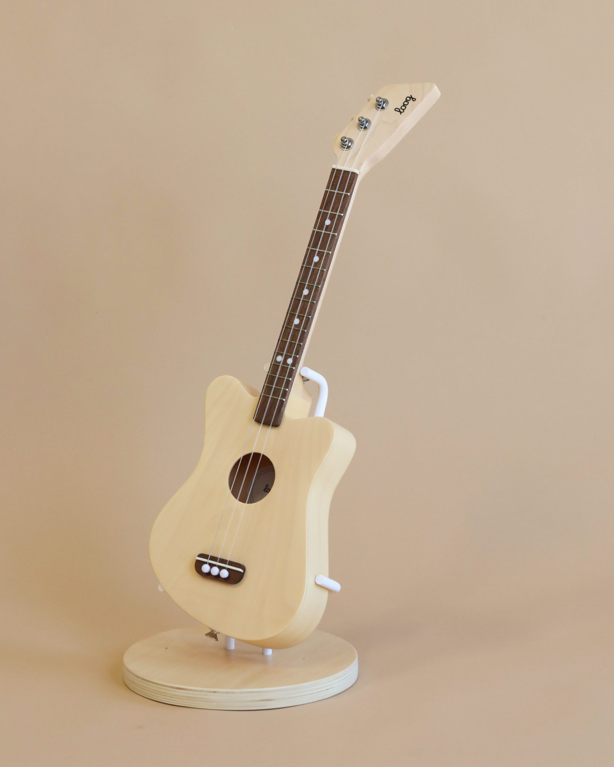 Most guitars for kids are simply cheap, scaled-down replicas of a standard guitar. And because they have six strings anyway, the neck is still too wide for a child to play comfortably – let alone easily. Plus, cheap guitars tend to be cheaply made. It makes sense to avoid spending a fortune on a beginner’s instrument, but by going with really bad quality build and materials, chances are your kid won’t feel engaged enough to play.