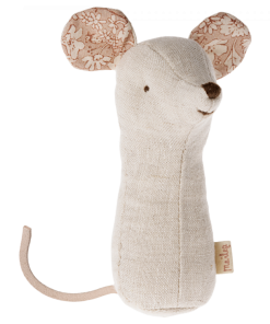 Lullaby friends is a collection of beautiful items for babies. This rattle is perfectly shaped for a small hand and has a stimulating rattle sound. It is made in soft fabrics with unique prints and packed in a beautiful gift box.