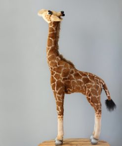 Artisan hand sew the animals “inside out”, an old world tradition that results in the mininization of seams, and their bodies are carefully “sculpted” to create “musculature” and “features” like movement in a walking or sitting position that are unique to each creature. On average, there are 42 separate pieces required to make each animal, that must be combined by a team of truly creative artists to create the distinctly realistic features that characterize HANSA animals. (Some animals have as many as 240 different parts!) Each animal is individually hand sewn, to give it a unique “personality”, there are more than 860 different fabrics and man-made furs from which the “coat” and “hides” are made, along with over 6000 sets of different eyes, whiskers, claws, noses, and related accessories allocated for creating these wonderful plush animals. Stuffing emphasizes careful attention to the placement of the highest quality man-made materials.