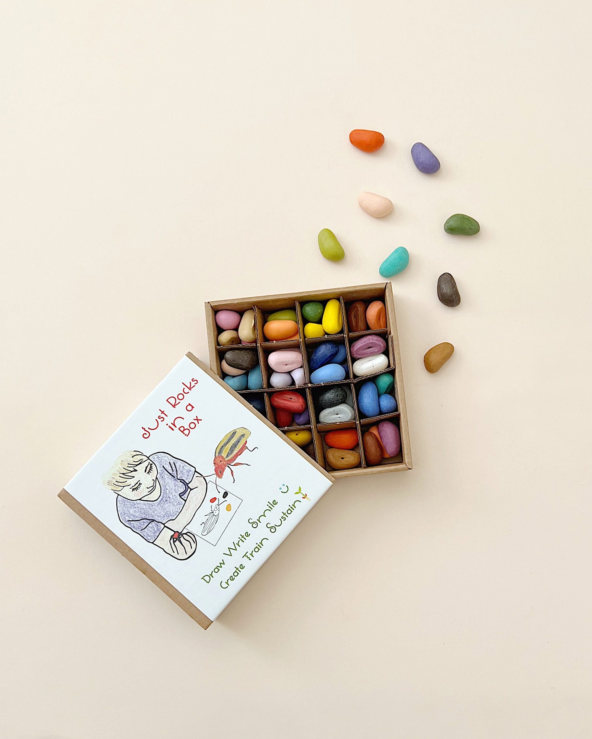 - CRAYON ROCKS – Are simply the best coloring tool for young children! Made in rural Kentucky, USA from soybean wax, they are vibrantly colored and create beautifully textured child artwork similar to oil pastels.