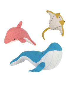 Handmade from a soft wool blend with embroidered features, these three Ocean friends are the perfect size for small hands and are wonderful prompts for hours of imaginative play.