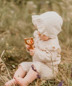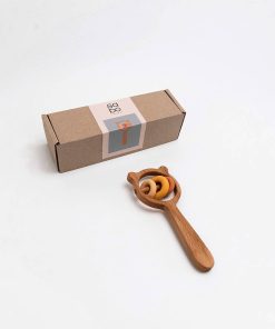 SABO Concept presents the Bear and Rings Rattle in Yellow-Pink. A delightful addition to your child’s playtime, this handheld rattle is crafted from durable, natural materials that are designed to last. Its deep color palette is pleasing to the eye, and the rattle’s design encourages motor skills development. The combination of wooden bear and rings creates a unique play experience. Trust in SABO Concept for toys that not only entertain but also endure for generations.