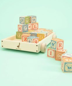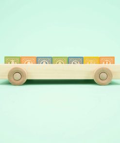 This basswood wagon provides sturdy storage and transportation for 28 ABC blocks. Tote, sort, and store your blocks in this clever little wagon.