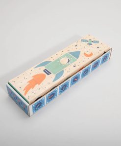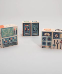 Countdown 6 to takeoff! You’re going to outer space. Build your rocket ship and zoom through the sky. Study your control panel. Land on another planet. What will you see as you explore other worlds? More than colorful blocks, this artful set is a decorative puzzle with a ruler.